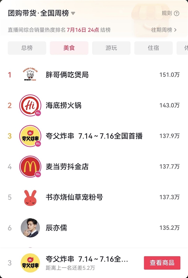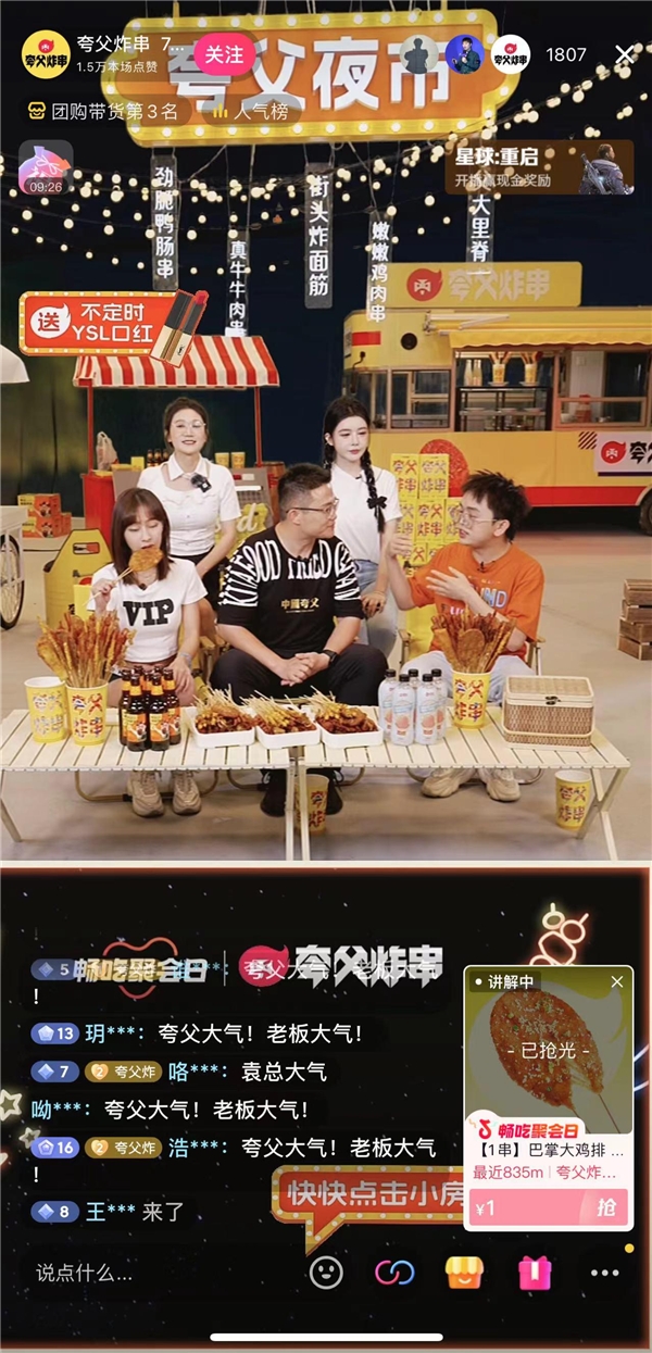 一組數(shù)據(jù)正驗(yàn)證消費(fèi)者、特別是年輕消費(fèi)群體對于夸父炸串的信任,前不久的抖音「暢吃聚會日」聯(lián)合夸父炸串,開展了一場以夜市為主題的沉浸式場景直播,創(chuàng)造了36小時累計(jì)成交額突破1766萬的成績,累計(jì)在線觀看人數(shù)超過100萬,成為抖音本地生活小吃快餐人氣榜TOP1品牌,也是全國美食周榜前三品牌。